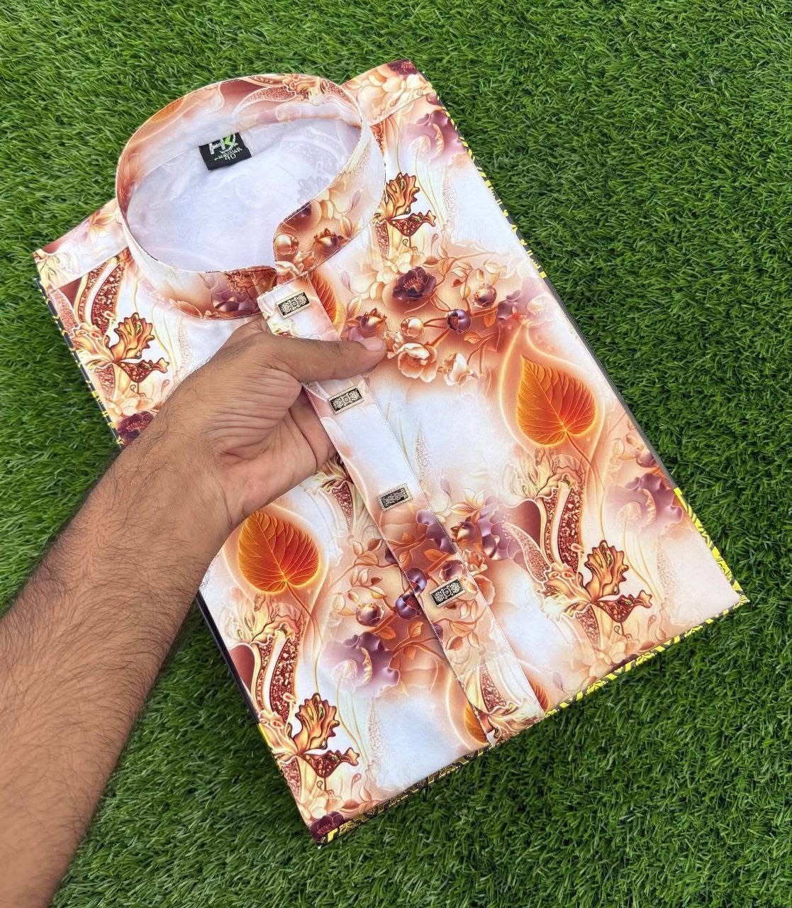 জামদানি সাদা লাল পান পাতা প্রিন্ট
