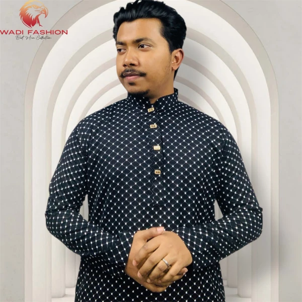 জামদানি কালো নিল পান পাতা প্রিন্ট